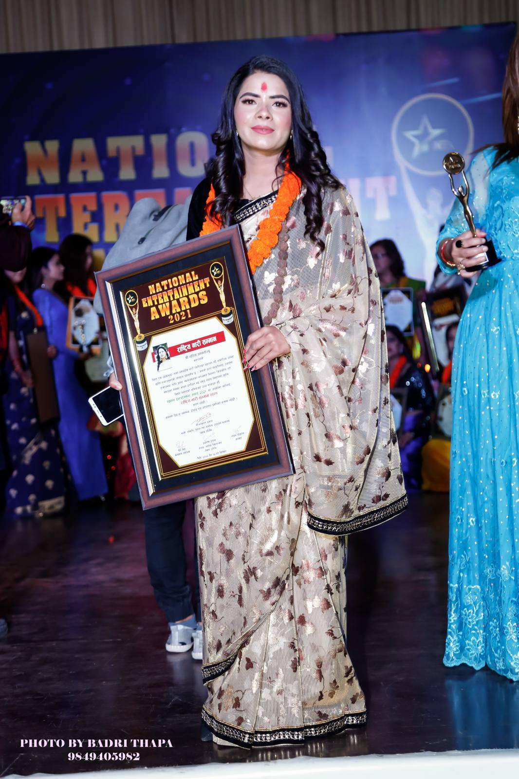 चलचित्र विकाश बोर्डका अध्यक्ष दयाराम दाहाल, बरिष्ट अभिनेता कृष्ण मल्ल, नेपाल चलचित्र कलाकार संघको अध्यक्ष रबिन्द्र खड्का, निर्माता संघको अध्यक्ष आकाश अधिकारि, चलचित्र प्राबिधिक संघका अध्यक्ष पुस्कर लामा, चलचित्र द्वन्द संघका अध्यक्ष नारयण प्रधान, लोकप्रिय अभिनेत्री दीपाश्री निरौला र प्रहरी उपरिक्षक लोकेन्द्र श्रेष्ठ सहितका अतिथिले फुलमाला लगाएर ताम्रपत्रद्धारा उनलाई सम्मानित गरेका हुन् ।