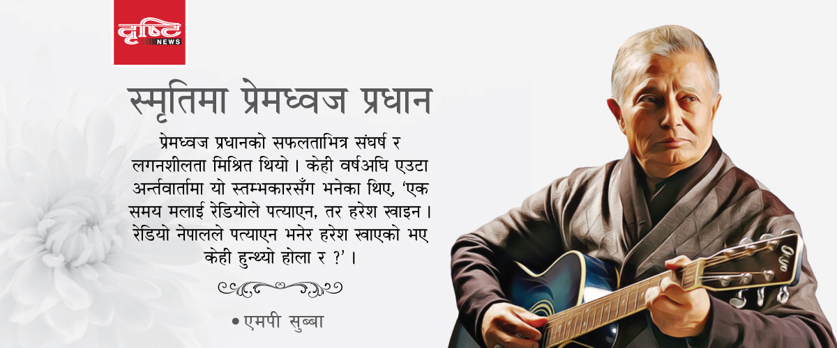 प्रेमध्वज प्रधानको सफलताभित्र संघर्ष र लगनशीलता मिश्रित थियो । केही वर्षअघि एउटा अन्तर्वार्तामा यो स्तम्भकारसँग भनेका थिए, ‘एक समय मलाई रेडियोले पत्याएन, तर हरेश खाइन । रेडियो नेपालले पत्याएन भनेर हरेश खाएको भए केही हुन्थ्यो होला र ?’