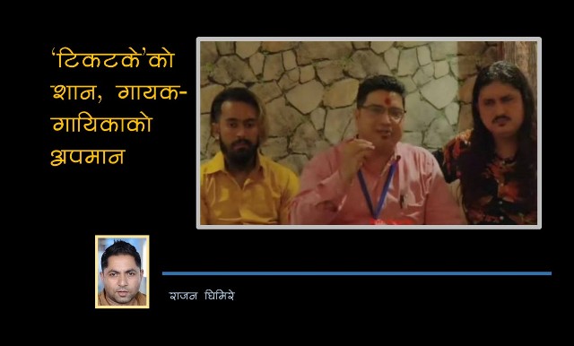 यस्तो अभिव्यक्ति दिने टिकटकेहरूको कुरा सुन्दा पनि तीनछक्क पर्नुपर्ने समय आएको छ । के उसो भए टिकटक आउनुअघि नेपाली गीत-सङ्गीतको बजार नै थिएन ? गायक–गायिकाहरूको कुनै नाम, चर्चा र क्रेज नै थिएन त ? यही टिकटके सिलिब्रेटीकै कारण मात्र चिनिएका र क्रेज बनाएका हुन् त गायक-गायिकाहरूले ? बोल्दा आफू के बोल्दै छु भनेर यसो सोचिकन बोल्ने कि टिकटके सेलिब्रेटीज्यूहरू….? जो अरूको गीत गाएर टिकटकमा मुख चलाउँदै अभिनय गर्छन्, तिनीहरूलाई वास्तविक सर्जकले भाउ दिनुपर्ने ? उनीहरूलाई भेट्नुपर्ने ? आखिर किन ? कुरा बुझिसक्नु छैन । टिकटकेहरूको नेपाली गीत-सङ्गीतमा यत्रो योगदान र उचाइ छ है ? यिनीहरू नभएको भए नेपाली गीत-सङ्गीत र सर्जक गुमनाम हुन्थे है ! उदेकलाग्दो कुरा !!