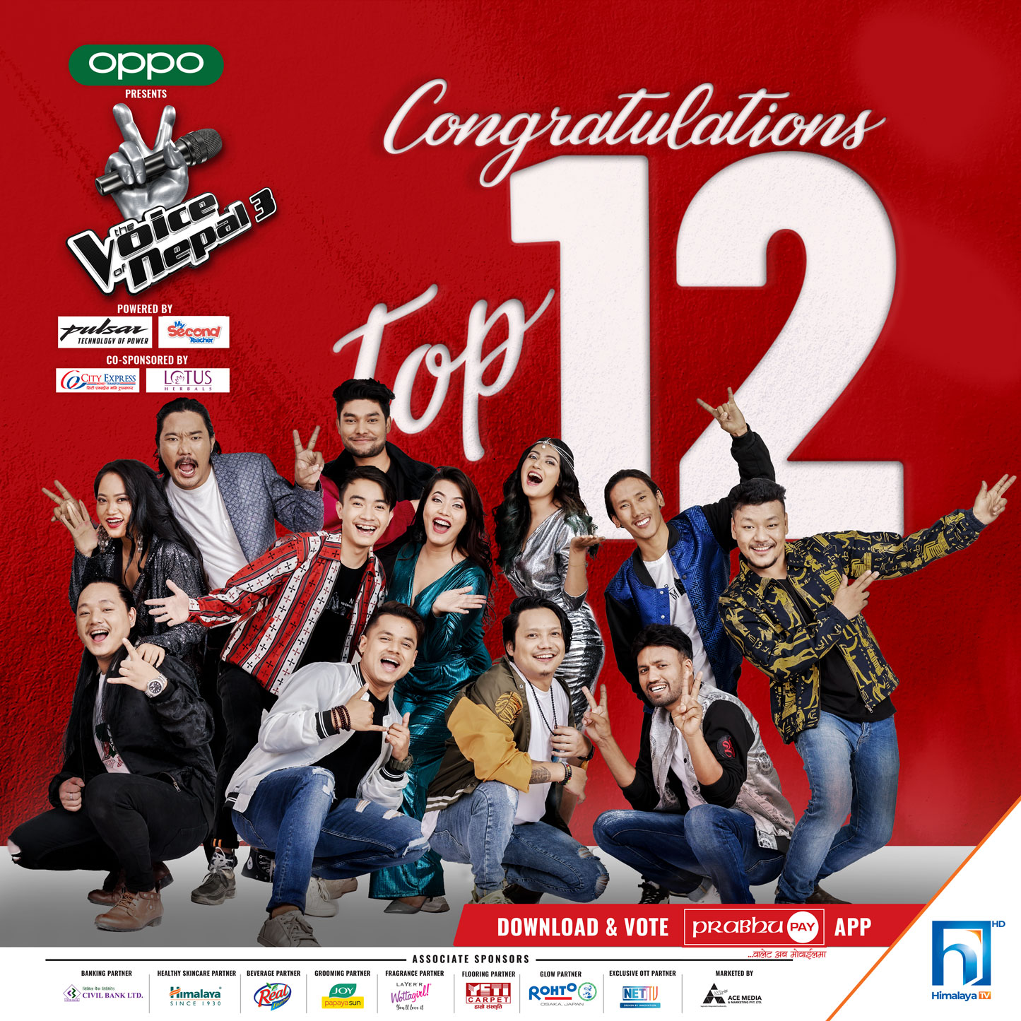 काठमाण्डौ । हिमालय टेलिभिजनबाट प्रसारण भइरहेको चर्चित गायन रियालिटी सो ‘द भ्वाइस अफ नेपाल’ सिजन ३ मा उत्कृष्ट १२ प्रतिस्पर्धी छानिएका छन् ।