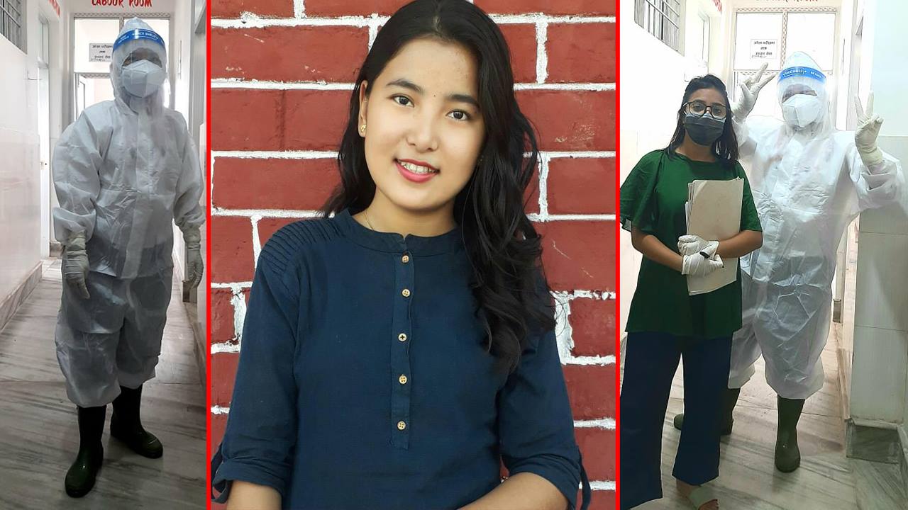 उर्लाबारी । राजघाट कोभिड आइशोलेसन सेन्टरमा कार्यरत स्वास्थ्यकर्मी गरिमा मोक्तान मास्क र पिपिईभित्र गुम्सिएर धेरै पटक रोएकी छिन्। फेस शिल्डले छोपिएको आँसुलाई गरिमाले आफ्नो हातले पुस्न पनि पाएकी पनि छैनन्।