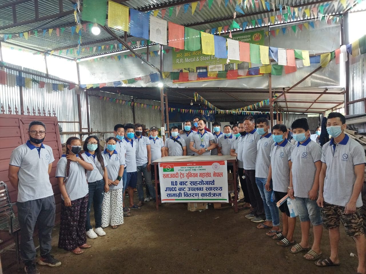 प्रजातान्त्रिक उद्यौगीक कारखाना श्रीमक संगठनको केन्द्रीय अध्यक्ष रामबहादुर गोलेलगायत प्रजातान्त्रिक औद्योगीक श्रमिक संगठनको केन्द्रीय कमिटिको संयोजकत्वमा स्वास्थ्य सामाग्री वितरण कार्यक्रम सम्पन्न भएको छ ।