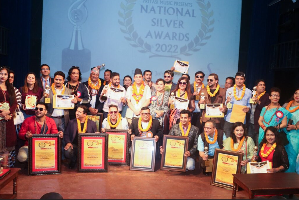 काठमाण्डौ असार २३ – प्रियसी म्युजिक प्रा.लीको आयोजनामा नेशनल सिल्भर अवार्ड २०२२ राष्ट्रिय नाचघर जमलमा सम्पन्न भएको छ । गीत संगीत लगायत अन्य विभिन्न क्षेत्रमा योगदान पुर्याउने व्यक्तित्वहरुलाई प्रोत्साहन स्वरुप प्रदान गरिएको आयोजक समितिका अध्यक्ष राजेन्द्र पुरीले बताएका छन् । मोडल तथा कार्यक्रमा अध्यक्ष अमन श्रेष्ठको सभापतित्वमा सम्पन्न भएको कार्यक्रममा साँस्कृतिक तथा पर्यटन मन्त्री (बागमति प्रदेश) दिपेन्द्र श्रेष्ठ प्रमुख अतिथि रहनु भएको थियो ।