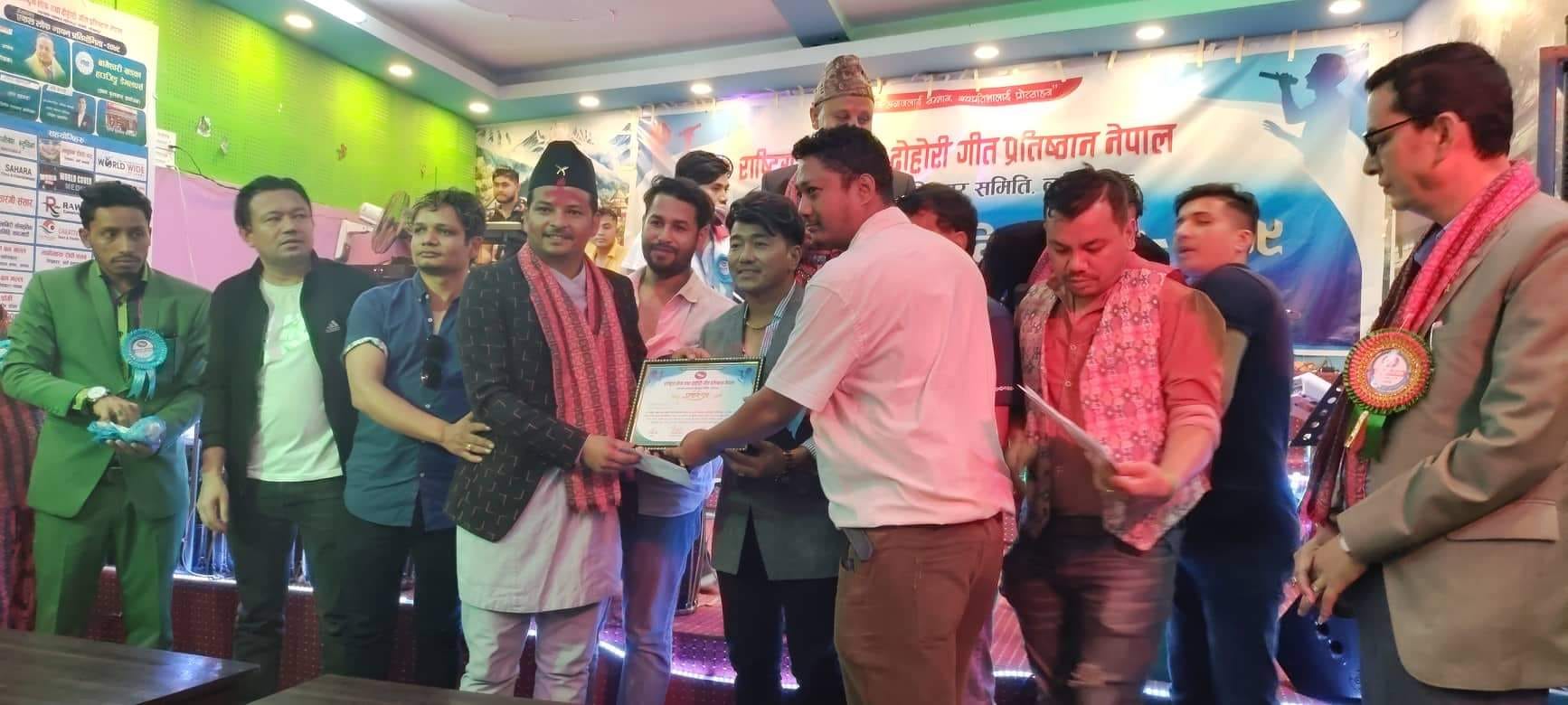 काठमाडौं असार २६ – “हाम्रो अभियान अग्रजलाई सम्मान, नवप्रतिभालाई प्रोत्साहन” भन्ने मुल नारा सहित राष्ट्रिय लोक तथा दोहोरी गीत प्रतिष्ठान नेपाल, उपत्यका समन्वय ललितपुर समितीको आयोजनामा “संस्थागत एकल लोक गायन प्रतियोगिता – २०७९” भब्य रुपले सम्पन्न भएको छ । यस प्रतियोगिता सोही समितिका अध्यक्ष सुजन बराईलीको अध्यक्षतामा सम्पन्न भएको हो भने केन्द्रिय अध्यक्ष रमेश बिजिको प्रमुख आतिथ्यता रहेको थियो ।