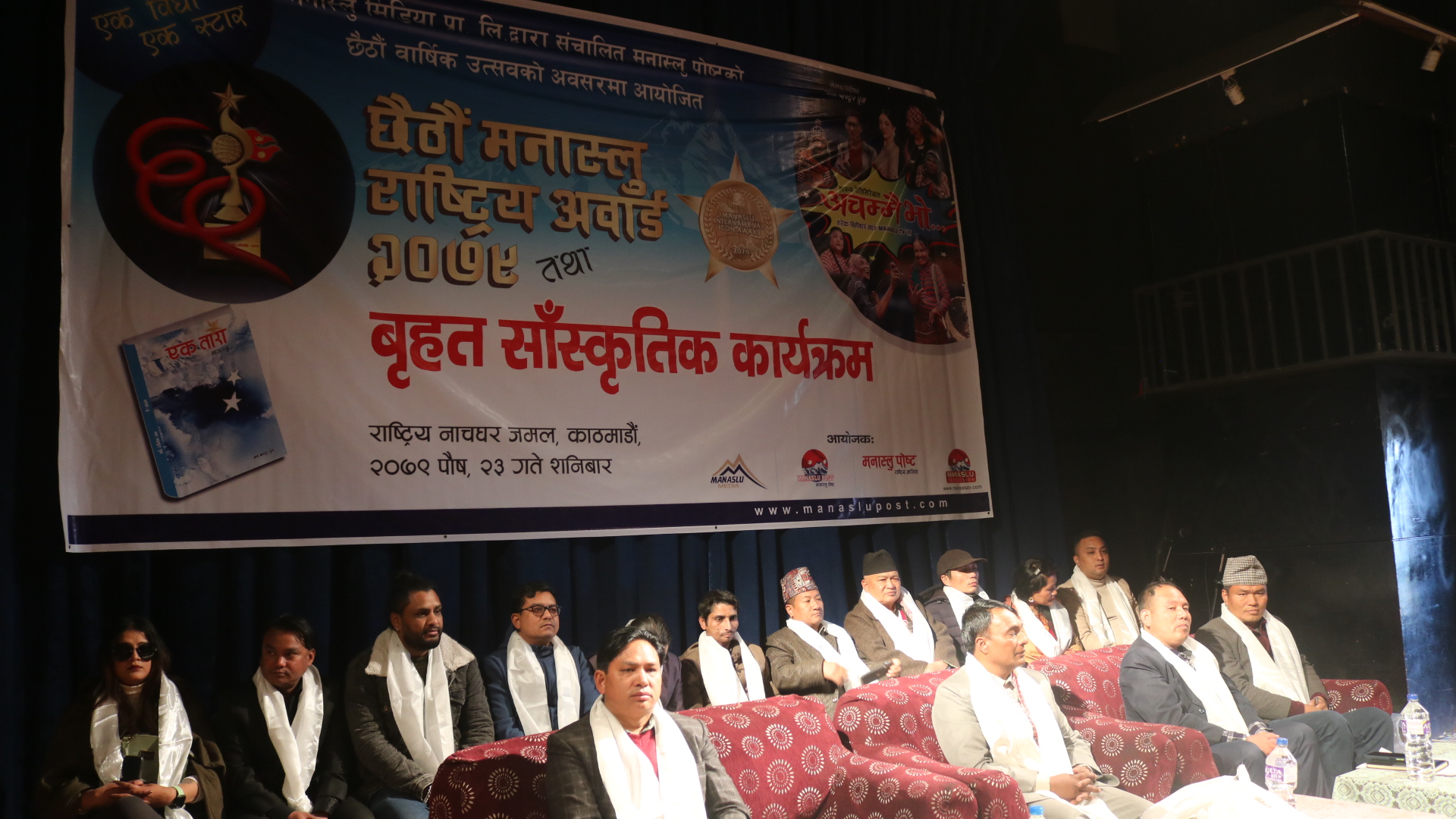 काठमाडौं, पौष २४ । मनास्लु मिडिया प्रा.लि.को आयोजनामा “छैठौं मनास्लु राष्ट्रिय अवार्ड – २०७९ तथा दोस्रो मनास्लु ईन्टरनेशनल आईकन अवार्ड” सम्पन्न भएको छ । यस कार्यक्रममा मनास्लु मिडिया प्रा.लि.का अध्यक्ष मन बहादुर पुनको अध्यक्षता रहेको थियो भने पुर्व युवा तथा खेलकुद मन्त्री दलजित श्रीपालीको प्रमुख आतिथ्यता रहेको थियो ।