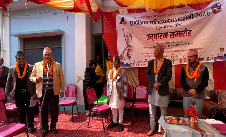 नेपाल ललितकला प्रज्ञा प्रतिष्ठानका सदस्य सचिव देवेन्द्रकुमार काफ्ले ‘थुम्केली’ ले नेपालको संविधान २०७२ अनुसार रही प्रतिष्ठानले पहिलोपटक सातै प्रदेशमा ‘प्रादेशिक ललितकला प्रदर्शनी’ गर्ने सिलसिलामा ६ वटा प्रदेशमा प्रदर्शनी सकेर हिजोदेखि बाग्मती प्रदेशमा शुरु गरेको बताउनुभयो । उहाँले प्रतिष्ठानले गरेको यो अभ्यासले प्रदेशको मौलिक, रैथाने कलालाई संरक्षण तथा प्रवद्धन गर्न थप सहयोग पुगेको बताउनुभयो ।