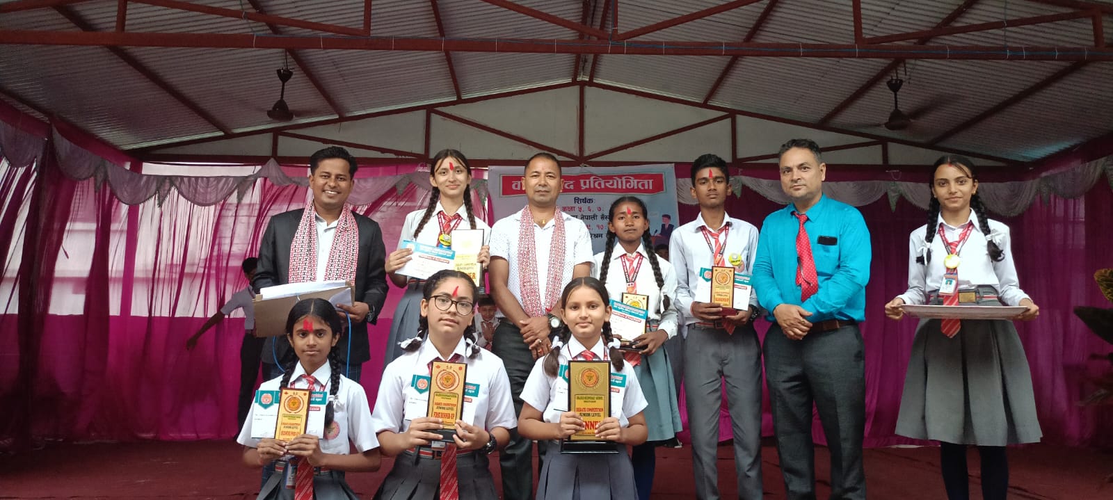 त्यस्तै कक्षा ५ देखि ७ सम्मको समूहबाट कक्षा ६ की छात्रा प्रशिष्का बराल प्रथम भएकी छन् । ‘विदेशी संस्कृतिभन्दा नेपाली संस्कृति उत्तम’ विषयमा केन्द्रित वादविवादमा पक्षमा तर्क राखेर बराल प्रथम भएकी हुन् । त्यस्तै कक्षा ७ की छात्रा थनिसा पोखरेल द्वितीय र कक्षा ७ कै अदिती झाले तृतीय पुरस्कार प्राप्त गरेका थिए । कार्यक्रमका प्रमुख अतिथिसमेत रहेका प्रमुख निर्णायक मीनकुमार नवोदितले विद्यालयस्तरदेखि नै विद्यार्थीको क्षमता विकासमा लाग्नुपर्नेमा जोड दिए । उनले विद्यार्थीलाई पाठ्यपुस्तकको ज्ञानसँगै बाहिरी ज्ञान पनि दिनु जरुरी रहेको उल्लेख गरे । विद्यालयमा हुने अतिरिक्त क्रियाकलापले विद्यार्थीको ज्ञान निखारता ल्याउनुका साथै प्रतिस्पर्धी क्षमताको समेत विकास हुने नवोदितको भनाइ थियो ।