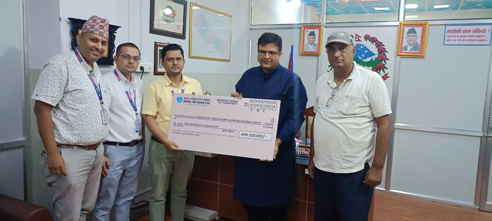 बैंकले बुधबार महानगरका मेयर नागेश कोइरालालाई २ लाख रुपैयाँ बराबरको चेक हस्तान्तरण गरेको छ । कार्यकक्षमै पुगेर बैंकका प्रदेश प्रमुख रविन घिमिरे, प्रदेश उपप्रमुख अमित कोइराला र विराटनगर शाखा प्रमुख सुदीपकुमार अर्यालले मेयर कोइरालालाई चेक हस्तान्तरण गरेको हो । हालसम्म २० लाख ५० हजार रुपैयाँ परियोजनाको खातामा जम्मा भइसकेको छ ।