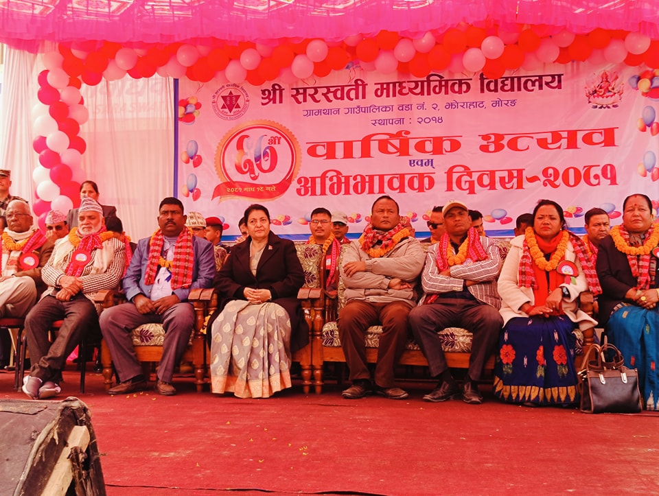 महेश भट्टराई / काठमाण्डू: मोरङको ग्रामथान गाउँपालिका वडा नं.- २ झोराहाट स्थित सरस्वती नमुना माध्यमिक विद्यालयको ६७ औं वार्षिकोत्सव तथा अभिभावक दिवस , सम्मान तथा पुरस्कार वितरण , शैक्षिक प्रदर्शनी लगायत विविध कार्यक्रमहरु आयोजना गरी वार्षिकोत्सव सम्पन्न गरेको छ।