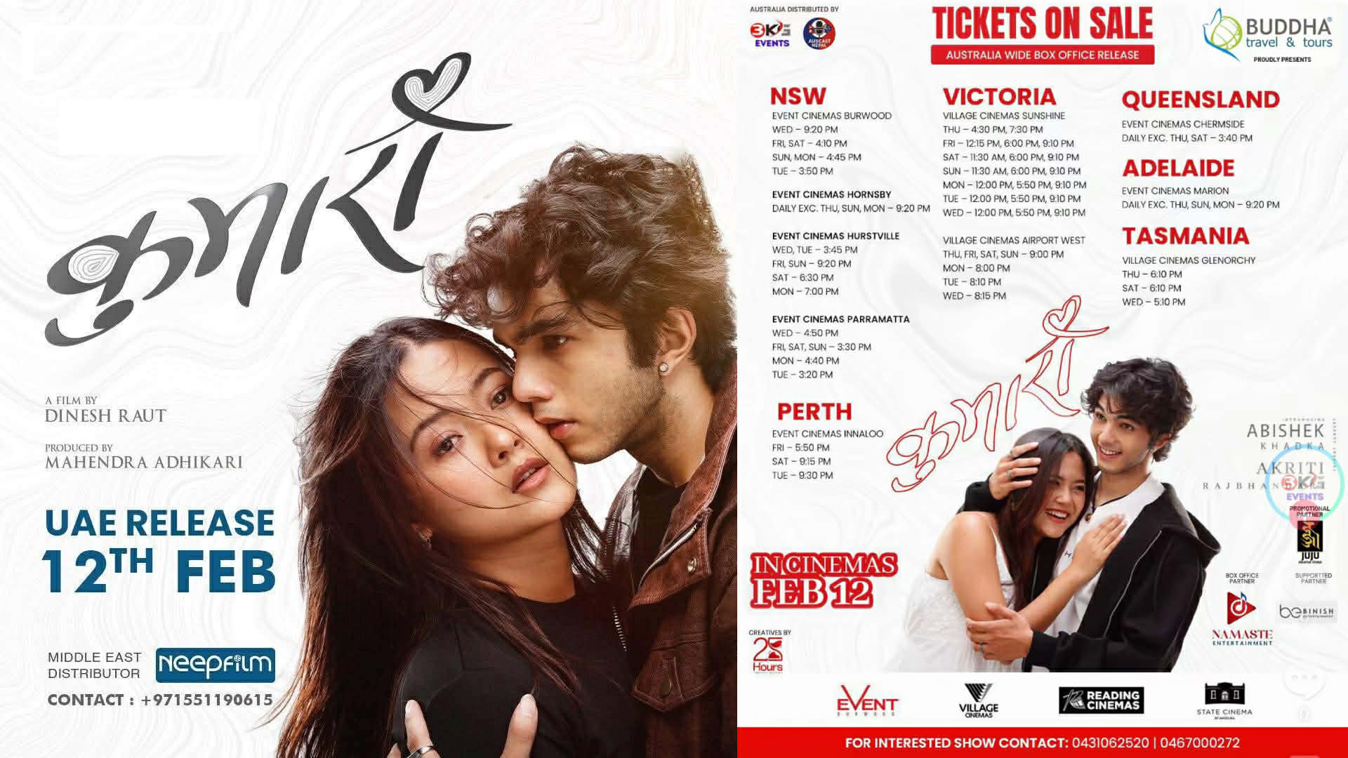 नेपाली बक्स अफिसमा राम्रो प्रतिक्रिया पाइरहेको प्रेमकथा प्रधान फिल्म ‘कुमारी’ले अब अन्तर्राष्ट्रिय यात्रा सुरु गर्ने भएको छ। भोलि बिहीबार (१२ फेब्रुअरी)देखि अस्ट्रेलिया तथा मध्यपूर्वका विभिन्न देशहरूमा फिल्म औपचारिक रूपमा प्रदर्शनमा आउन लागेको हो। वितरकका अनुसार फिल्म त्यहाँका मुख्य सिनेमा चेनमार्फत नियमित शोसहित रिलिज हुनेछ।