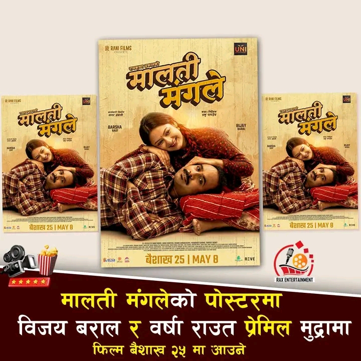 चर्चित गायक रामकृष्ण ढकालले पहिलो पटक निर्माण गरेको फिल्म ‘मालती मंगले’ आगामी बैशाख २५ गते (८ मे)देखि देशभर प्रदर्शनमा आउने भएको छ। निर्माण टिमले प्रणय दिवसको अवसर पारेर फिल्मको फर्स्टलुक पोस्टर सार्वजनिक गर्दै औपचारिक रिलिज मिति घोषणा गरेको हो। सो मितिमा हालसम्म अन्य कुनै नेपाली फिल्म नजुधेकाले ‘मालती मंगले’ एकल प्रदर्शनको फाइदा उठाउने अपेक्षा गरिएको छ।