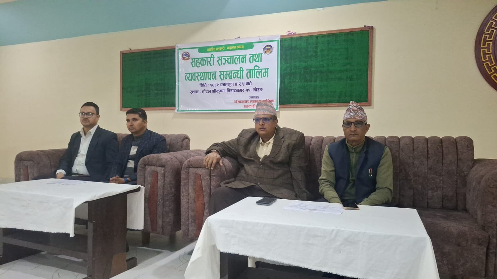 तालिम कार्यक्रममा राष्ट्रिय सहकारी बैंक लिमिटेडका कोशी प्रदेश कार्यालय प्रमुख चिरञ्जीवि तिम्सिना, सहकारी शाखाकी प्रमुख राई तथा जहदा गाउँपालिकाका सहकारी शाखा प्रतिनिधि दीपककुमार खड्काले सहजीकरण गर्ने सहकारी शाखाकी रोजी कार्कीले जानकारी दिइन् ।